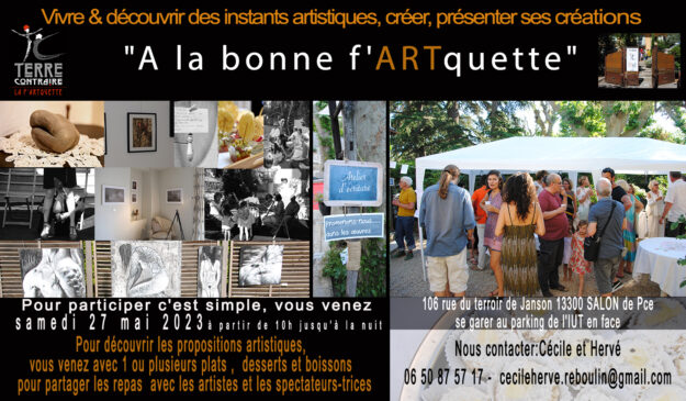 À la bonne f’ARTquette : c’est parti ! Elle aura lieu toute la journée du samedi 27 mai 2023 Nous vous invitons à découvrir une partie de la programmation artistique LES EXPOS Christine Exposition de sculpture sur bois HélèneExposition de photographies GoddaSur FacebookExposition de peinture LES SPECTACLES Léa et Lola présentent « Diverticule(s) »Clap d’or des Z’EXpressives 2023 Arnaud &…