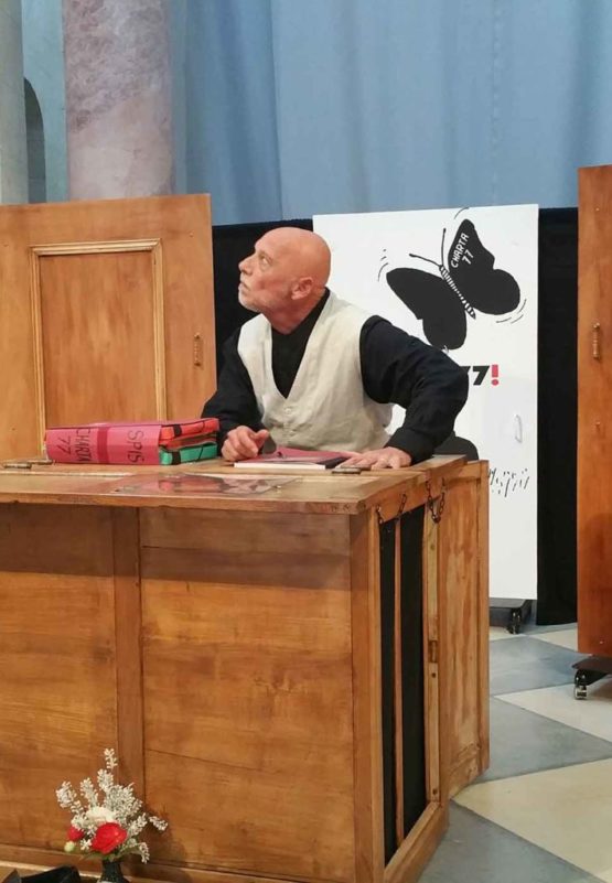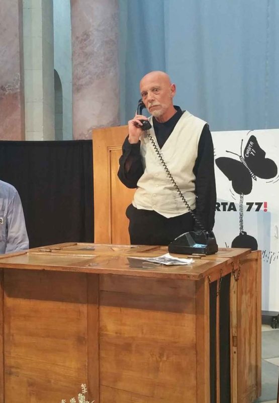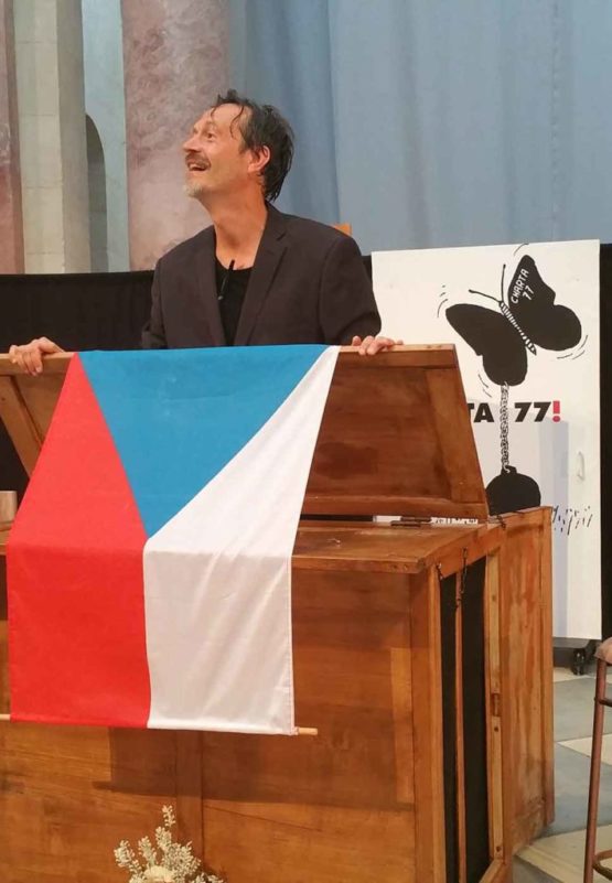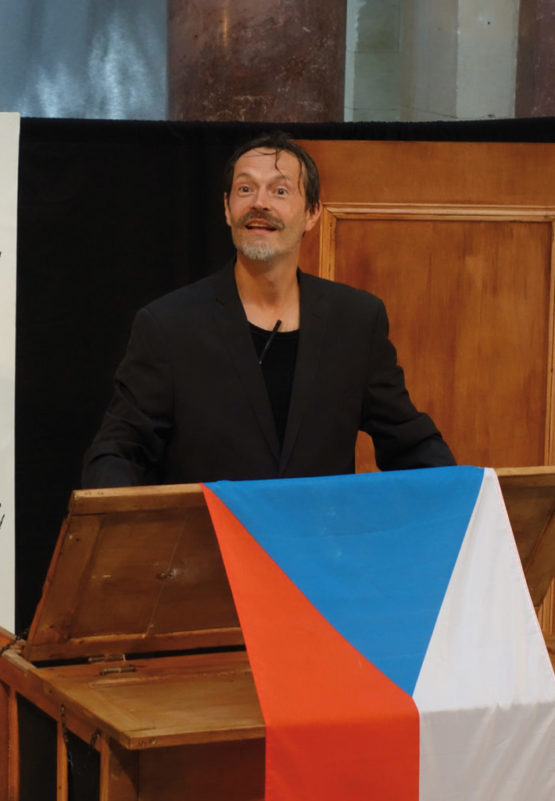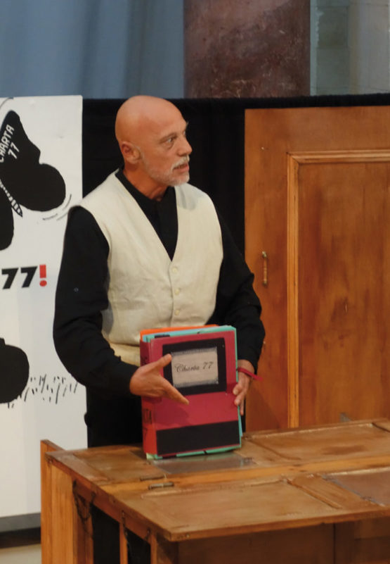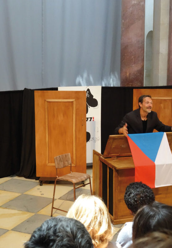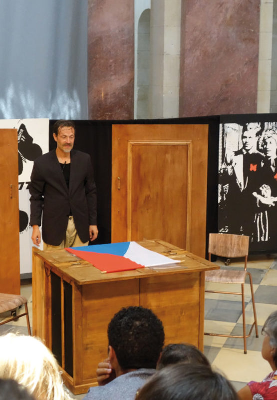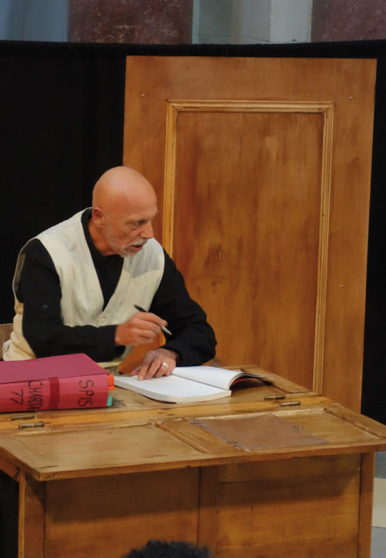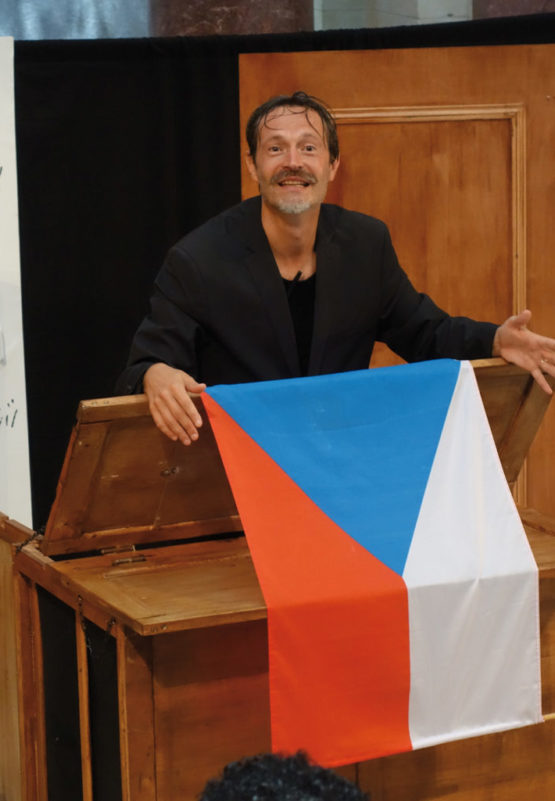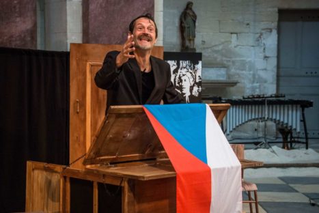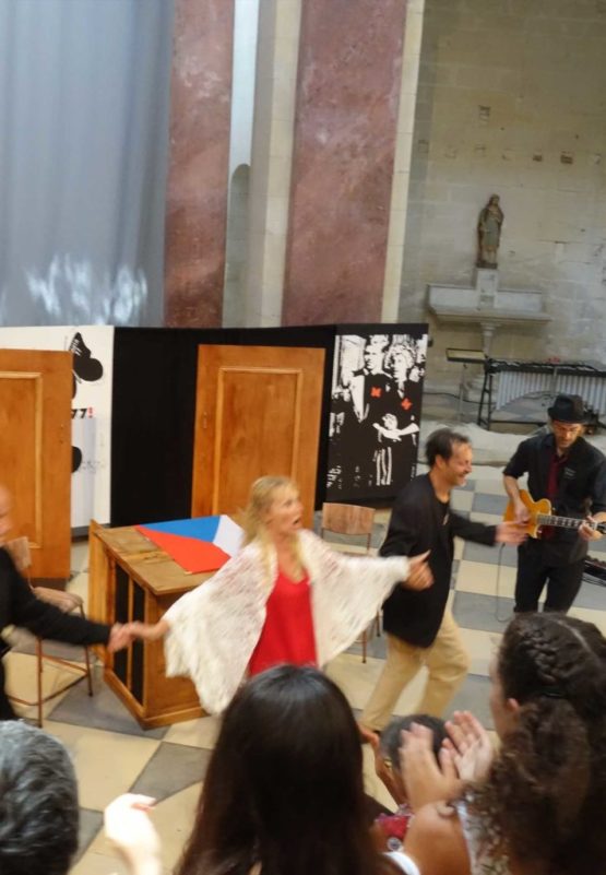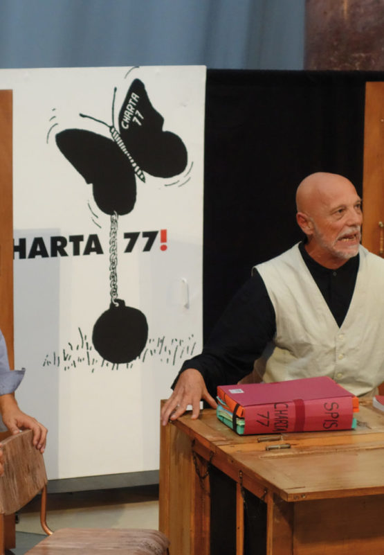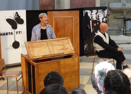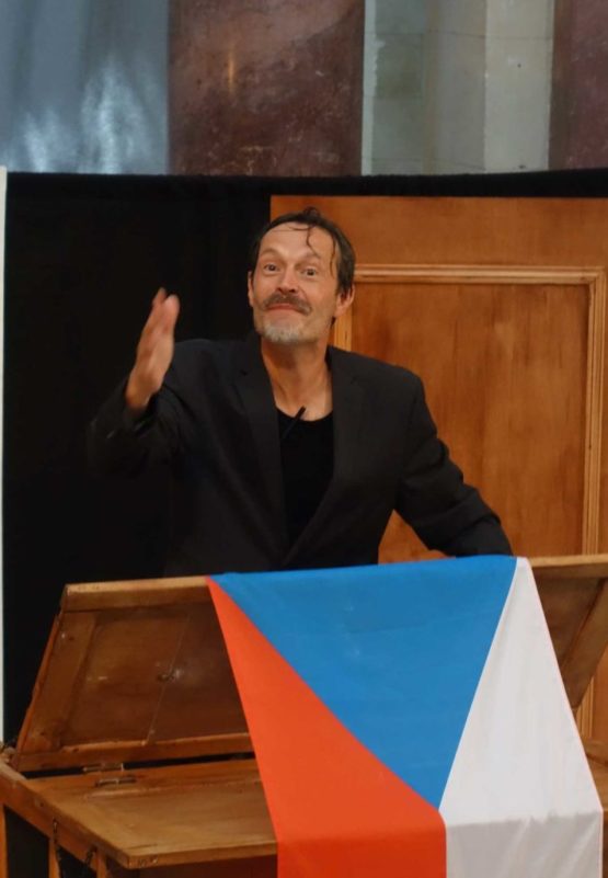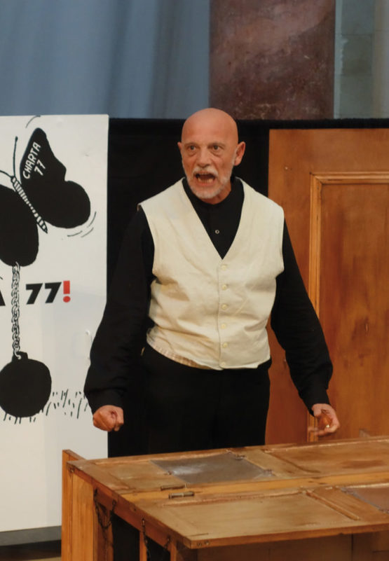 Entre humour et gravité, la compagnie Terre Contraire met en lumière les vies de Václav Havel : celle de dramaturge reconnu, celle de dissident aux nombreuses actions décisives, de prisonnier et enfin de premier président élu de la république tchécoslovaque puis tchèque. Sa voix/voie résonne à partir d’extraits de pièces de théâtre, de lettres écrites à sa femme Olga durant ses années d’emprisonnement et de ses discours prononcés en tant que dissident ou président. Terre Contraire invite les spectateurs à un voyage en Terre d’Havel autour d’éléments clés porteurs d’une profonde humanité et brûlants d’actualité :